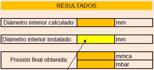 Se calcula la presión final para el diámetro interior elegido o instalado.